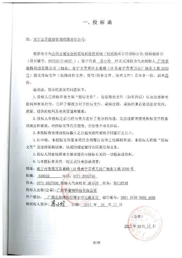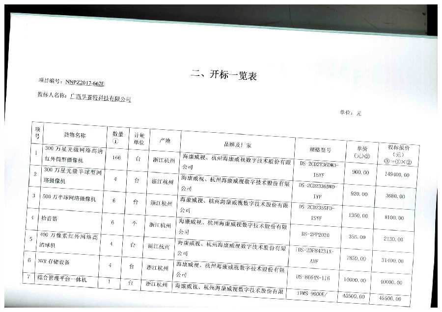 一、采購項(xiàng)目名稱及編號:公共區(qū)域安全防范視頻監(jiān)控系統(tǒng)工程采購(NNPZ2017-662E)
