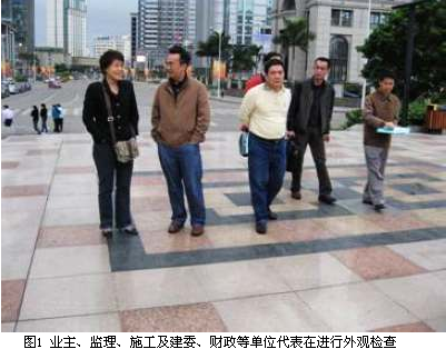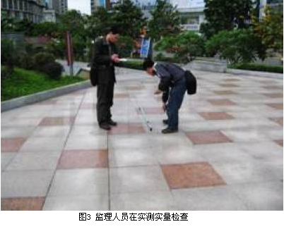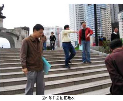 我公司負責該工程施工階段全過程監(jiān)理。工程內容包括①土建維修,它又包括石材鋪裝、路面、噴泉水溝蓋板等維修;②亮化維修;③噴泉水下燈維修;④石凳設置。為更好地完成監(jiān)理工作,我公司派出了素質好、能力強的監(jiān)理人員組建項目監(jiān)理處,他們認真負責、踏實工作,圓滿完成了監(jiān)理任務,向政府和市民交出了一份滿意答卷。