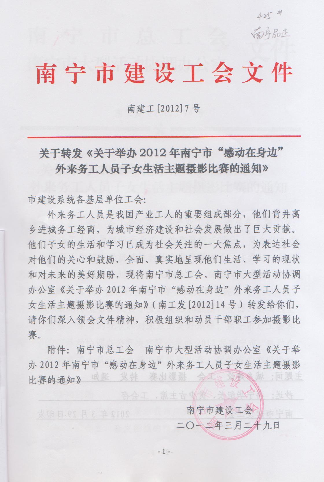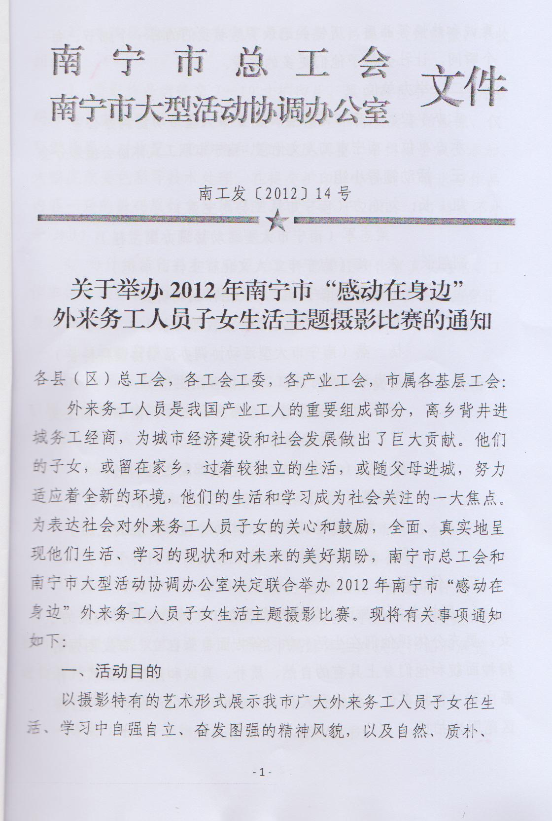 關(guān)于轉(zhuǎn)發(fā)《關(guān)于舉辦2012年南寧市“感動(dòng)在身邊”外來(lái)務(wù)工人員子女生活主題攝影比賽的通知》