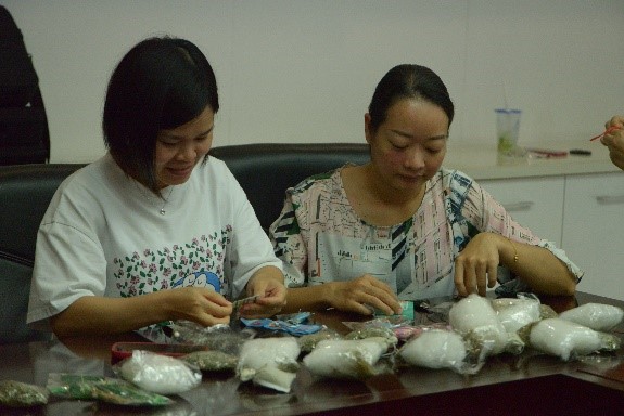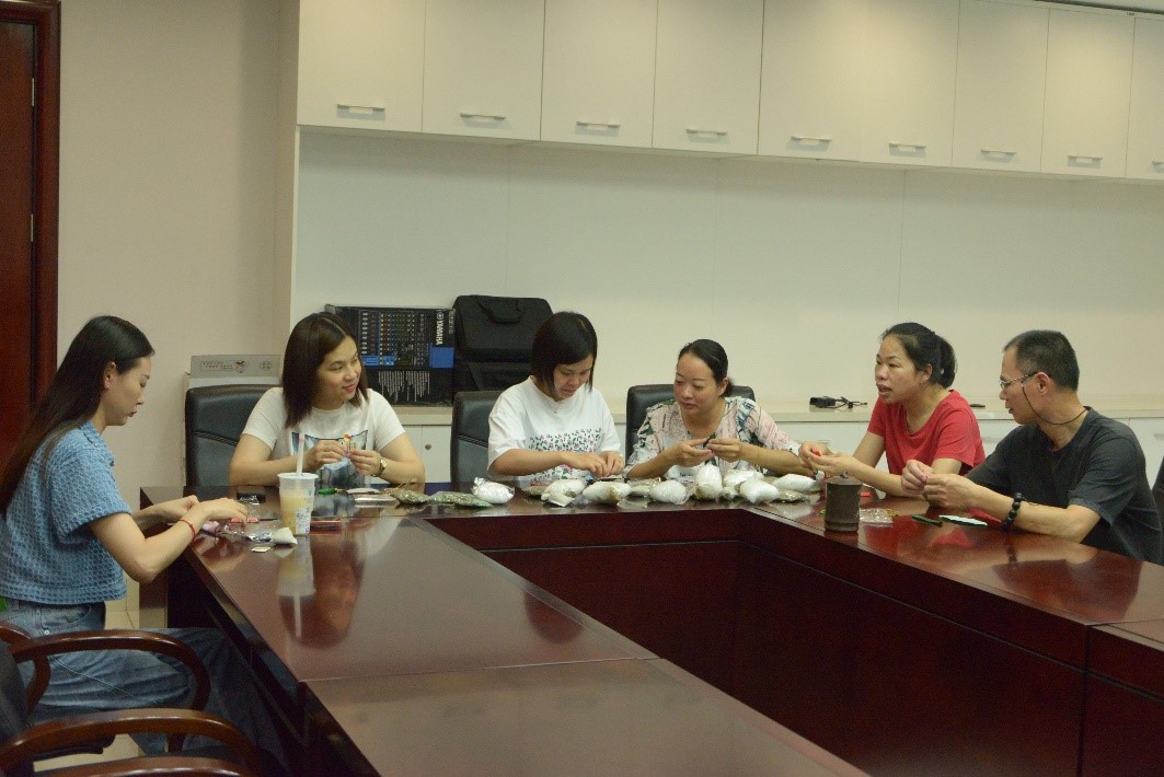 接著大家興致勃勃地開(kāi)始制作端午節(jié)香囊。黨辦主任陳茵同志早已采購(gòu)好制作香囊的材料,大家挑選自己喜歡的樣式,認(rèn)真制作起來(lái)。