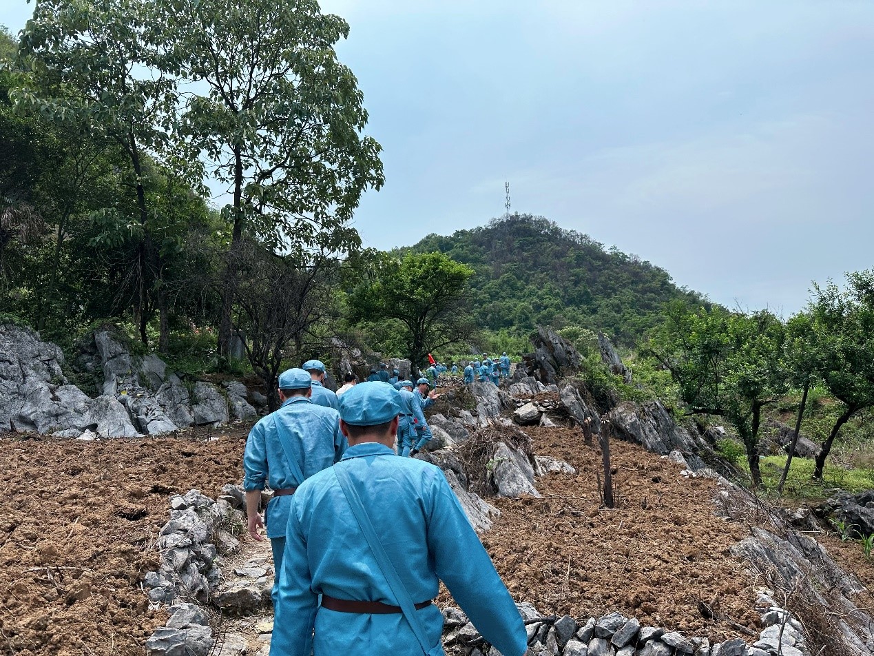 在灌陽參觀湘江戰(zhàn)役新圩阻擊戰(zhàn)酒海井紅軍紀(jì)念園,黨員同志們懷著無比沉重的和崇敬的心情,聆聽了當(dāng)年紅軍血灑湘江、氣壯山河的悲壯歷史。隨后廣大黨員干部,通過“穿一套紅軍服,走一段紅軍路”跟隨革命腳步,重走紅軍長征路,沿著革命先輩走過的崎嶇道路,一步一腳印,體會到了湘江戰(zhàn)役戰(zhàn)士的艱辛不易,一路追尋英雄將士們的紅色長征足跡,重溫那段難忘的歲月,在傳承紅色血脈的熏陶洗禮中,進(jìn)一步傳承紅色基因,賡續(xù)紅色血脈。