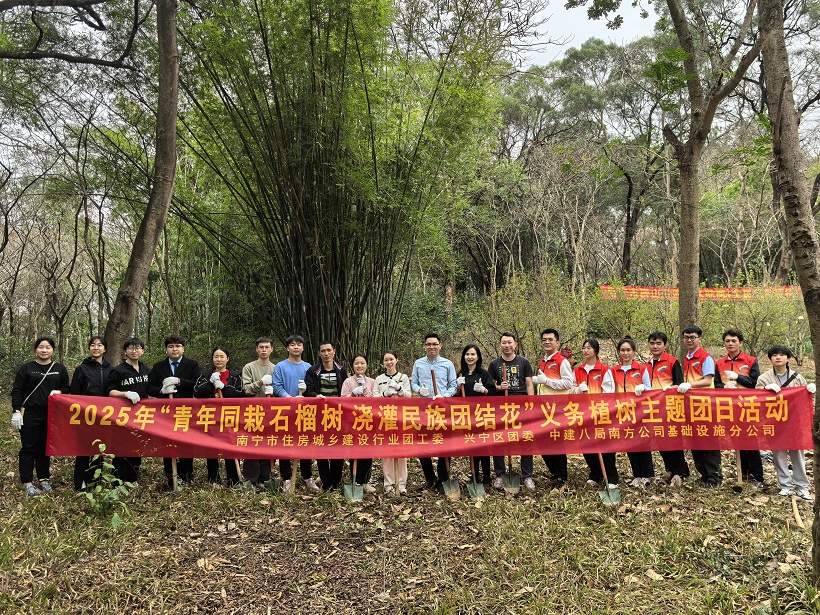 為深入貫徹落實黨的二十屆三中全會精神,提高廣大團員青年愛護自然、保護環(huán)境的意識,2025年3月13日,由共青團南寧市住房城鄉(xiāng)建設(shè)行業(yè)工作委員會和共青團南寧市興寧區(qū)委員會共同主辦,中國建筑第八工程局有限公司南方公司基礎(chǔ)設(shè)施分公司承辦的“青年同栽石榴樹 澆灌民族團結(jié)花”植樹主題團日活動在南寧市獅山公園順利開展。公司團委書記劉媛佳、青年團干覃夏參加了此次活動。