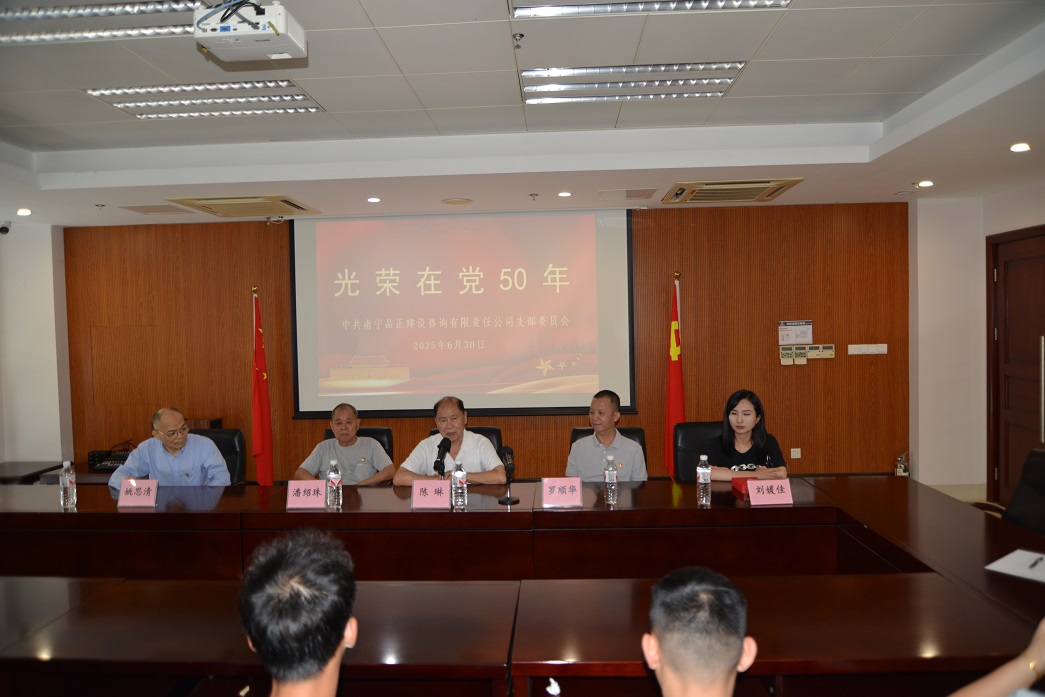 百年征程波瀾壯闊,百年初心歷久彌堅(jiān)。在全國(guó)上下喜迎中國(guó)共產(chǎn)黨成立104周年之際,南寧市住建行業(yè)黨委于2025年6月30日下午到南寧品正黨支部對(duì)老黨員潘紹珠同志進(jìn)行慰問(wèn),并給其頒發(fā)“光榮在黨50年”紀(jì)念章,傳達(dá)了黨中央對(duì)老黨員的關(guān)懷肯定之意,表達(dá)了對(duì)老黨員的崇高敬意之情,激勵(lì)廣大黨員以更加高昂的姿態(tài),奮力開(kāi)創(chuàng)工作新局面。