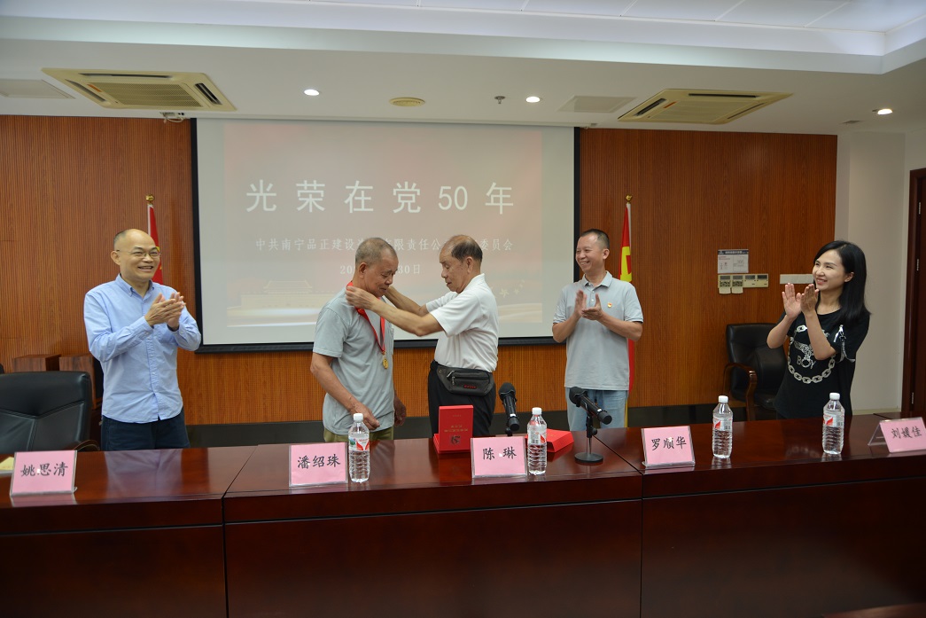 最后,南寧市住建行業(yè)黨委陳琳副書(shū)記發(fā)言致詞,他指出:“光榮在黨50年”紀(jì)念章是黨員用半生奉獻(xiàn)換來(lái)的榮譽(yù),這份榮譽(yù)是廣大黨員在學(xué)習(xí)黨史過(guò)程中的鮮活范例,榮譽(yù)之光更是照亮我們黨前行之路的一盞“明燈”。他希望潘紹珠保重身體,繼續(xù)發(fā)揮余熱,永葆政治本色;期望廣大年輕黨員以老黨員為榜樣,永遠(yuǎn)聽(tīng)黨話、感恩黨,跟黨走,賡續(xù)光榮傳統(tǒng),傳承精神譜系,砥礪奮進(jìn)、接棒前行,奮力在全面建設(shè)社會(huì)主義現(xiàn)代化國(guó)家新征程上譜寫新篇章!