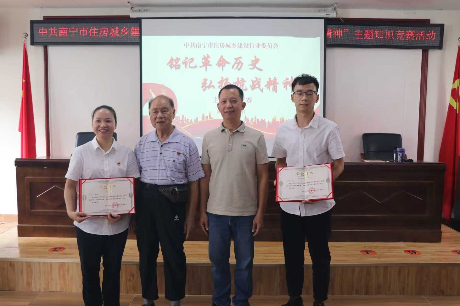 為紀(jì)念中國(guó)人民抗日戰(zhàn)爭(zhēng)暨世界反法西斯戰(zhàn)爭(zhēng)勝利80周年,深切緬懷革命先烈,大力弘揚(yáng)偉大抗戰(zhàn)精神和愛國(guó)主義傳統(tǒng),市住建行業(yè)黨委嚴(yán)格遵照黨中央要求,于2025年8月28日上午在黨員活動(dòng)中心舉辦“銘記革命歷史 弘揚(yáng)抗戰(zhàn)精神”主題知識(shí)競(jìng)賽活動(dòng)。我公司黨支部派優(yōu)秀黨員盧波和入黨積極分子肖欣積極參加活動(dòng)。