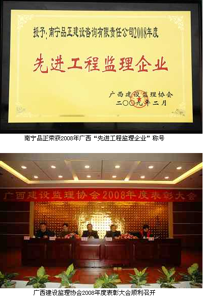 為推動我區(qū)建設監(jiān)理行業(yè)的快速發(fā)展,引導我區(qū)企業(yè)創(chuàng)建“名牌監(jiān)理企業(yè)”,激發(fā)監(jiān)理人員的愛崗敬業(yè)精神,在全區(qū)樹立起建設監(jiān)理行業(yè)的良好形象,近日,廣西建設監(jiān)理協(xié)會在南寧召開了“廣西建設監(jiān)理協(xié)會2008年度表彰大會”。大會授予南寧品正建設咨詢有限責任公司等16家單位“廣西先進工程監(jiān)理企業(yè)”稱號,授予南寧品正曾振華、黃燕玲和陳秋等36人“廣西優(yōu)秀總監(jiān)理工程師”稱號,授予南寧品正姚思清、劉豫黔和宋熒冬等40人“廣西優(yōu)秀監(jiān)理工程師”稱號。大會號召受到表彰的先進單位和優(yōu)秀個人,戒驕戒躁、再接再厲,開拓進取,再創(chuàng)佳績,為全區(qū)建設監(jiān)理事業(yè)的發(fā)展做出更大的貢獻。