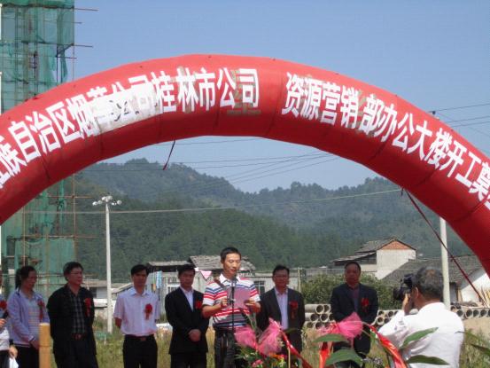2011年10月18日,南寧品正承監(jiān)的桂林煙草資源縣營銷部經(jīng)營業(yè)務(wù)用房工程舉行隆重的開工儀式,資源縣領(lǐng)導及相關(guān)單位的負責人參加儀式。桂林分公司謝建明副經(jīng)理作為監(jiān)理方代表發(fā)言,并承諾努力為該工程建設(shè)提供優(yōu)質(zhì)的服務(wù)。開工儀式取得圓滿成功。